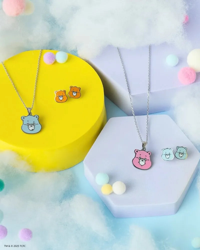 Straight from Care-a-Lot, this pink Cheer Bear enamel necklace is perfect for kids who love a touch of fun and rainbows. Small and durable, made from stainless steel to withstand everyday adventures while keeping their cheerful charm. A playful accessory that brightens any day!