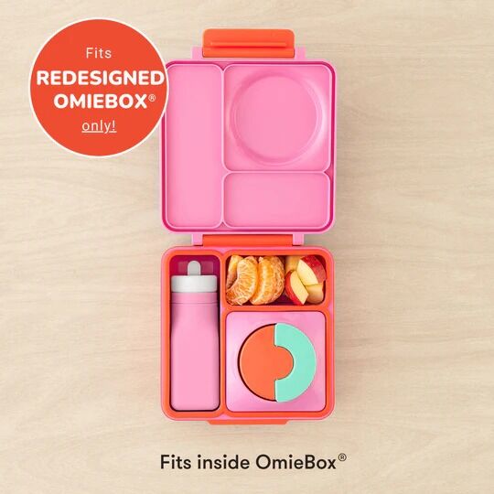 The silicone water bottle is made to fit inside the re-designed OmieBox perfectly! The flip-and-sip straw helps kids stay hydrated, holding up to 257ml of liquids.