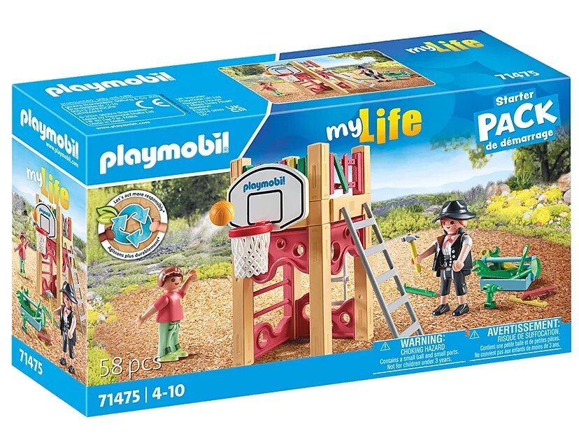 At the playground, a new tower is being built. The carpenter works diligently, skilfully assembling all the elements. The little boy eagerly waits to finally inaugurate the play tower. PLAYMOBIL Starter Packs invite children to dive directly into the diverse world of PLAYMOBIL. The sets include play figures and matching accessories from popular PLAYMOBIL worlds, are quickly assembled, and immediately ready play. Good for the environment: The playset is made up of more than 80% sustainable materials.