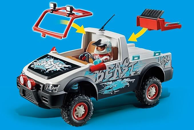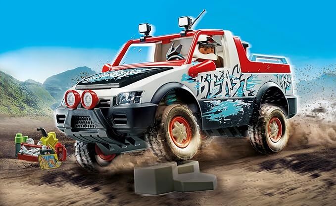 Hit the track with the cool Rally Car from PLAYMOBIL! Put on the helmet and start the next race with the PLAYMOBIL rally driver. Thanks to it's movable front axle, the vehicle adapts effortlessly to any terrain. When the hood is opened, it reveals the engine block. Remove the roll-bar to insert the figures. The pickup truck is RC-capable and can be combined with the Bluetooth RC module set (71397 - sold separately). A great playset for action-packed role-playing fun in the kids' room.
