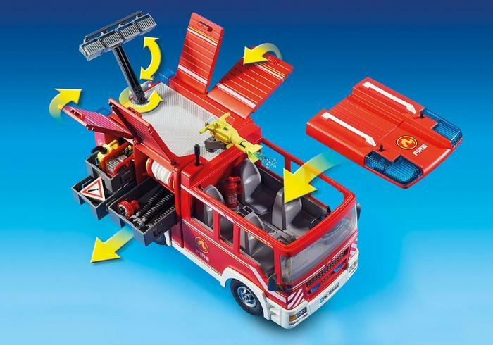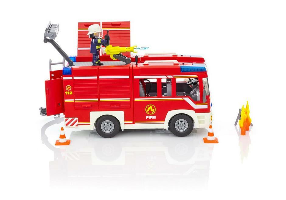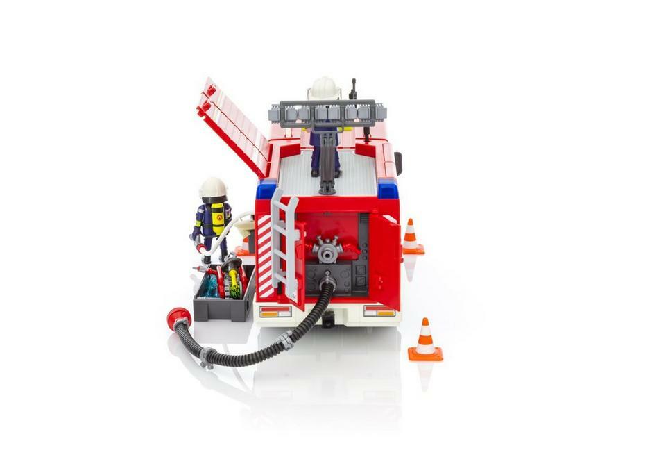 Be prepared for any firefighting adventure with this set from Playmobil's City Action range. This set features engaging features such as a water cannon and real lights and sounds (2 AAA batteries required). With room for four figures in the cabin and lots of room to store equipment, the whole team is ready for action. Spray real water by combining with the Playmobil Firefighters with Water Pump (sold separately.)