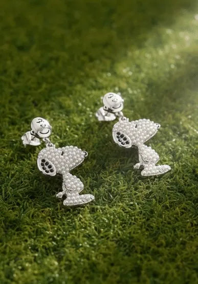 Celebrate the timeless charm of Peanuts with these elegant drop earrings featuring beloved characters Snoopy and Charlie Brown. Delicate mini pearl details add a refined touch to this whimsical design, creating the perfect balance between playful nostalgia and sophisticated style. Ideal for fans who appreciate classic animation with a touch of design.