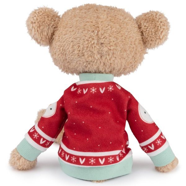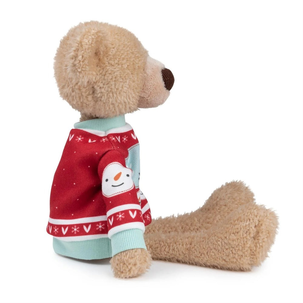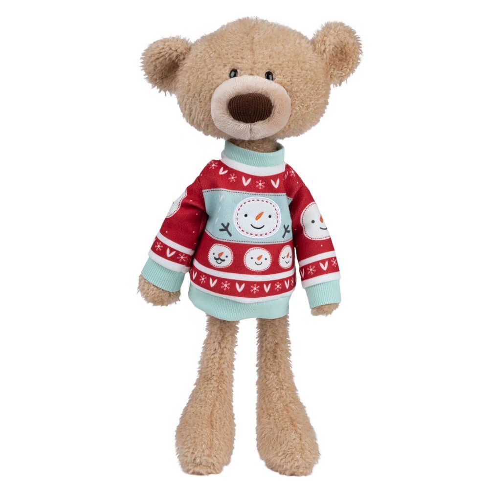 Celebrate the holidays with Sleigh! This special holiday-themed Toothpick bear sports a colourful green, white and red sweatshirt with vibrant wintry embroidered details. This festive bear is ready to welcome the winter weather with a smile, and even his colourful sweater is decorated with happy smiling snowmen and snowflakes! At 38cm tall, he's ready for on-the-go like the rest of our Toothpick pals, and his slender, unique profile is perfect for collectors and cuddlers of every age and personality. Surface-washable; appropriate for ages 1 and up.