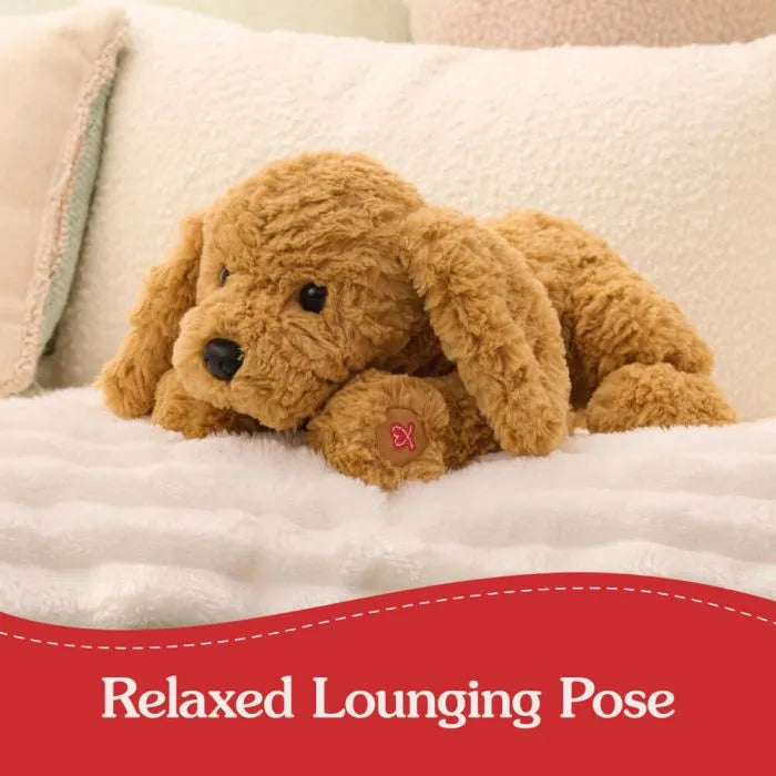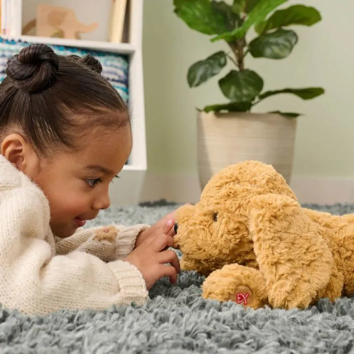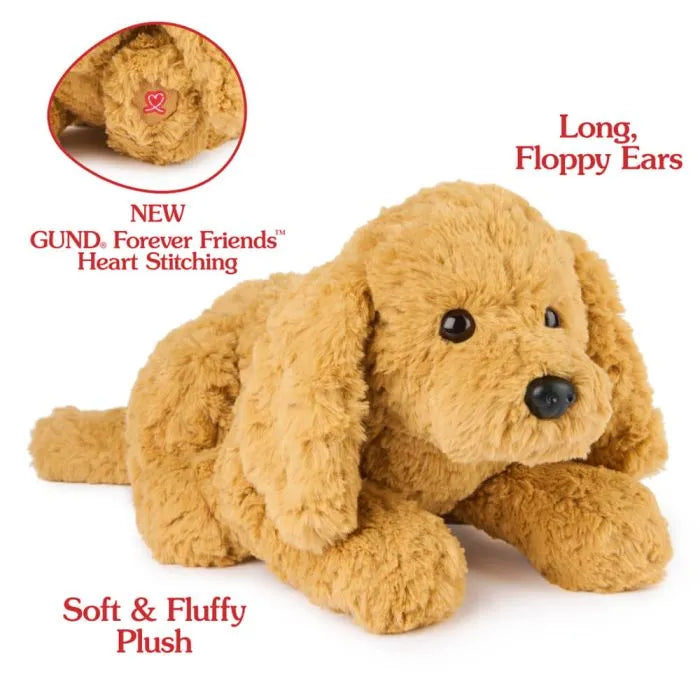 Muttsy is waiting for his forever home! This adorable Labrador puppy plush features swirls of slightly shaggy, textured amber fur, long, floppy ears, and a relaxed position that makes him look ready for playtime or naptime! You may notice a special new feature on Muttsy puppy. As part of GUND's Forever Friends collection, Muttsy has a red stitch heart on his left paw. This stitch is GUND's universal symbol of connection and the love someone feels when holding their favourite stuffed friend. This provides extra security for on-the-go play and all types of adventures. As your Forever Friend, this this loveable dog is ready for anything!