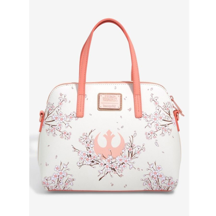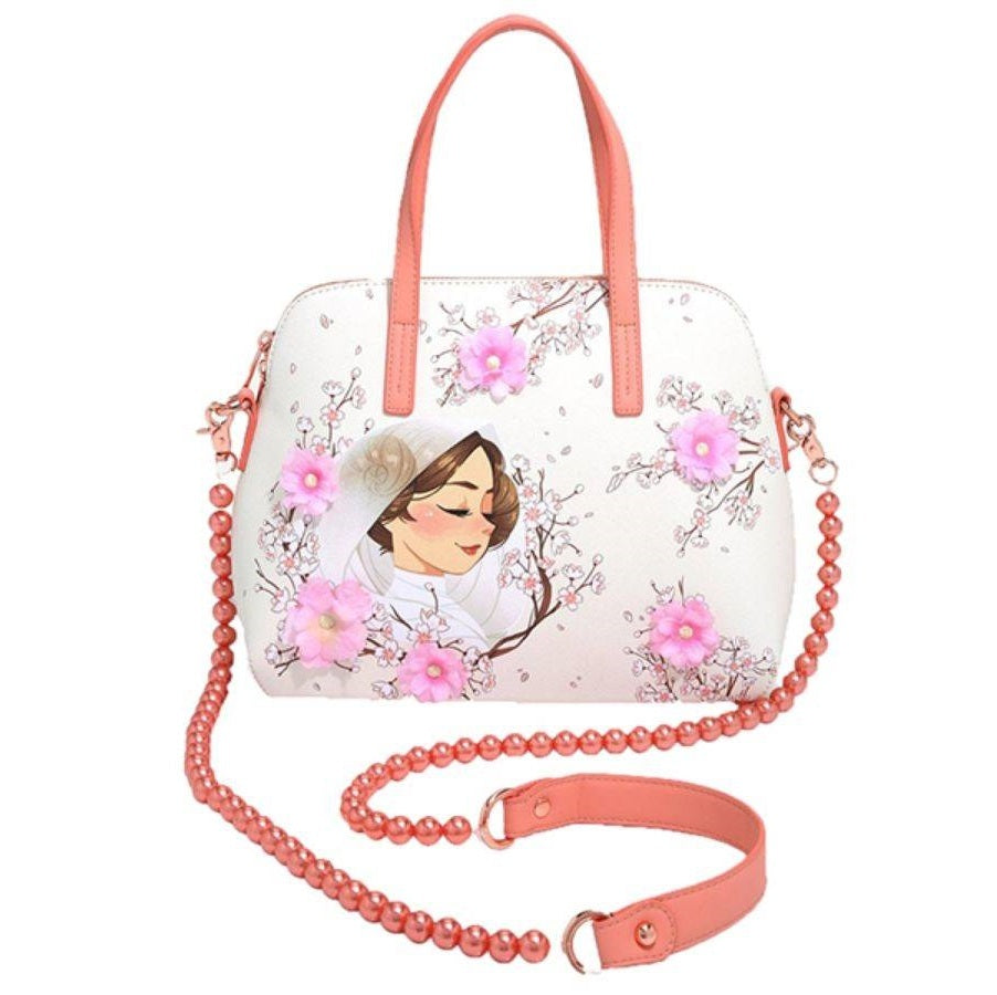 A beautifully illustrated portrait of Leia is featured on the front of this bag, adorned with delicate cherry blossom flower graphics and appliques. With rose gold-toned hardware, a beaded shoulder strap, an enamel brand badge and a starships and icons interior print pattern, this bag is perfect for carrying all of your daily essentials for your travels both near and to a galaxy far, far away.
