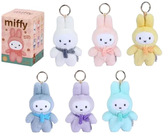 Brighten your day with a pop of pastel and a dose of cuteness from the Miffy Standing Plush Keyrings. These miniature Miffys are dressed in cozy bunny suits, each in a different soft hue with a matching gingham scarf, making them irresistibly adorable. Clip them onto your bag, backpack or keys- these plush pals are full of charm and colour. There are 6 standard styles and 1 'secret' style to collect.