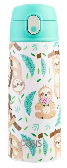 OASIS DOUBLE WALL INSULATED SIPPER STRAW KID'S DRINK BOTTLE - 550ML SLEEPY SLOTHS